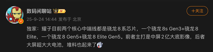 据此前曝光的消息,荣耀500标准版可能采用骁龙8s Gen3,Pro则是骁龙8 Elite。